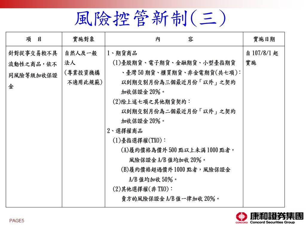 4.台股指數期貨類8/1日起近三個月以外契約加收20%保證金