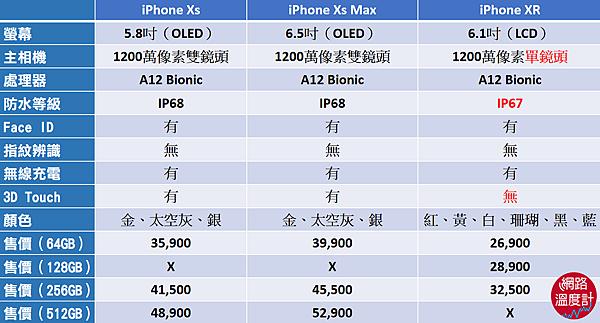 iPhone XS 、iPhone XS Max、iPhone XR價格售價手機顏色