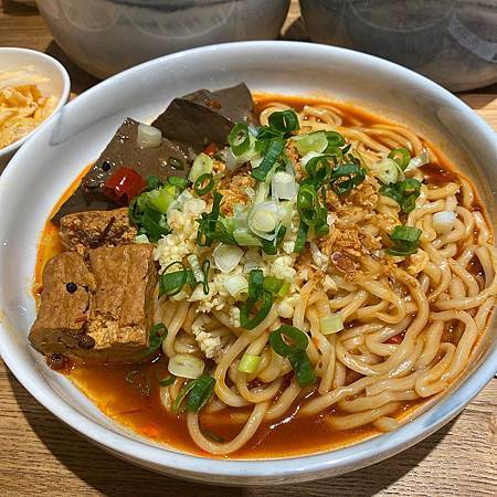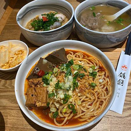 新北板橋江子翠美食 錵饌 真·麵舖 麻油雞佛拌麵好迷人!麻辣鴨血勁麵加大量蔥蒜才是內行人 清燉牛筋牛腱餛飩湯我愛!!