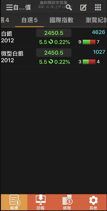 微型白銀、白銀期貨手機APP下單行情報價、閃電下單 截自>>康和e指通介紹
