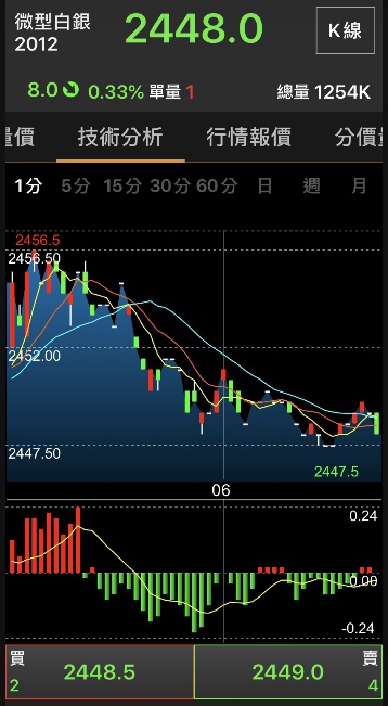 假設買進一口微型白銀期貨2445.5,看對方向賣出成交一口在2448