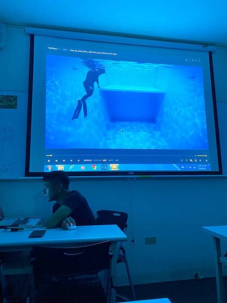 考試動態平潛40米的時候太投入在游,差點頭撞牆壁。還好海源教練即時神救援大概差3CM的距離抓住我的手