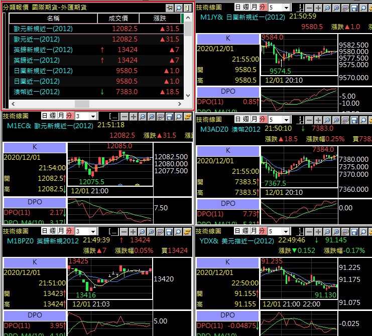 外匯期貨技術分析圖/歐元、英鎊、日圓、澳幣、美元指數期貨走勢