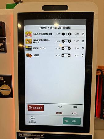 飲料、叉燒肉、年糕、起司片、雞蛋、海苔包 都是要先在機台裡結帳後自取!!