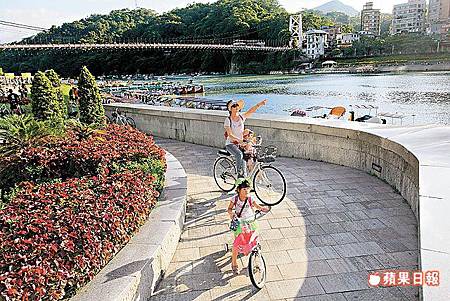新店溪畔的自行車道相當平坦,適合親子共騎,沿途還能欣賞青山綠水。