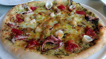 牛肉有點沒熟,大致上味道和餅皮都ok 再來是 海鮮青醬比薩