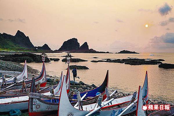 每年4月起,飛魚洄游至蘭嶼,開啟了蘭嶼的飛魚季,也宣告蘭嶼旅遊季逐漸靠近。 蘭嶼的海、蘭嶼的文化、蘭嶼的島嶼悠閒感,蘭嶼有太多吸引人的特色,騎上摩托車開啟環島旅程,也開啟探索蘭嶼、喜歡上這裡的理由。 東清部落的海上日出,有成排的拼板舟為前景,蘭嶼意象十足小飛機一抵達蘭嶼機場,一種島嶼度假的悠閒感旋即湧上心頭。總覺得蘭嶼的陽光比台灣柔和、海水比台灣湛藍,就連帶點海水鹹味的空氣中,也多了令人身心放鬆、想放懶的因子。抵達民宿,換上短褲、拖鞋,眼看時間還早,索性騎上摩托車先來一趟環島遊程。騎到哪玩到哪,漫無目的地來認識蘭嶼。 說是漫無目的,但行前其實早已做好諸多規劃。除了想沿著環島公路欣賞海景、奇岩怪石,也想看拼板舟,以及造訪野銀部落的半穴居傳統屋、到海邊泡個冷泉,更想坐在海景酒吧或者是發呆亭,放空看海喝杯冰涼的飲料…畢竟都到了蘭嶼,日頭赤炎炎,午後時分不找個地方吹吹海風、發呆,實在對不起自己。幸好,島上這樣的地方還真不少。 日出時分,東清灣周邊已有遊客專程來賞海上日出。 東清灣的日出特別迷人,由直昇機空拍更可見其氣勢。 拼板舟以紅、白、黑為主色調,船頭船尾可見圓形船眼紋等裝飾。