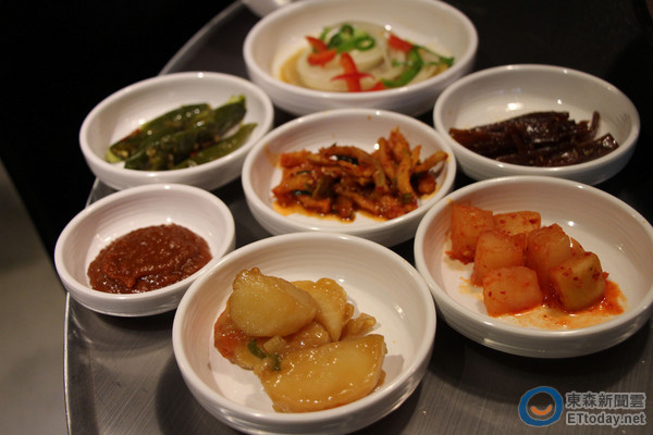 餐點分為早餐、商業午餐、晚餐、宵夜...等不同時段除了烤肉之外,也有石鍋拌飯、韓式鍋物、湯品和各種小菜。其中用餐就會贈送4道小菜,還可以無限續點
