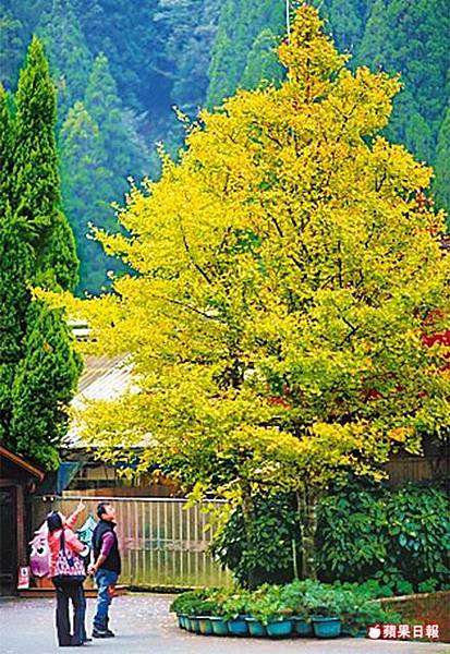 金風輕撫杉林溪銀杏,陣陣催葉黃。