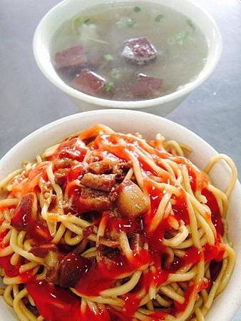 不少網友點名豬血湯,不管吃哪一種主食,都會加上豬血湯食用,前面所提及的「辣椒醬炒麵」也是常常跟豬血湯作為搭配,成為在台中生活的人們最愛的外食早點之一。