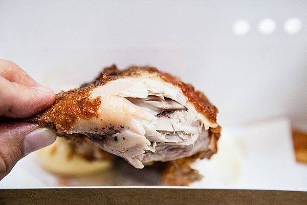 一打開紙盒便可感受到雞腿分量驚人,炸雞腿不像美式炸雞有著厚重的炸粉包裹,而是使用氣密式的壓力鍋來處理,炸皮就是相當薄脆的一層,吃起來略帶點香氣裡面的腿肉則是充斥著飽滿肉汁,吃來鮮嫩欲滴、肉汁真的會一直滴,多汁到令人覺得不可思議!搭著胡椒與香料佐味,銷魂美味不過如此!延伸閱讀>>>三十六雨風飄搖精彩食記