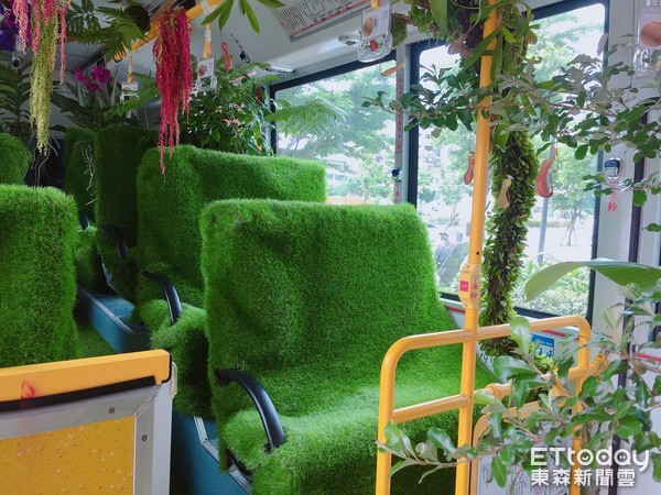 一踏上森林公車,陣陣的淡淡花香撲鼻而來,自然原始的氣息瀰漫在整個車廂中,整輛公車的每個角落都化作森林的一部分,讓人差點忘了公車的原貌。為了不讓台灣高溫潮濕的氣候影響車上的植物,凌宗湧特別選用的大量的台灣當季本土或亞熱帶的原生植物,如:野薑花、台灣鳶尾、鳳尾蕨等,充分表現了台灣的原生魅力。