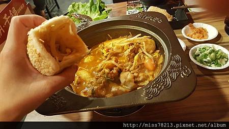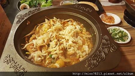 ((我們點了   塔香醬燒鍋 (搭配35加點 海鮮湯盤 ) + 起司雞腿鍋))