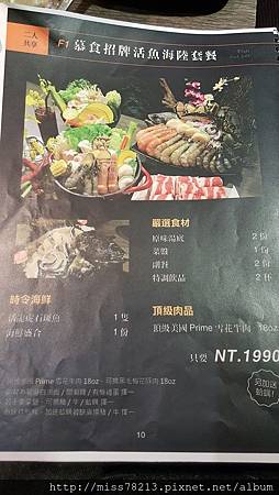 慕食極品和牛活海鮮平價鍋物 ○ 菜單 :
