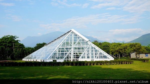 知卡宣森林公園除了有免費的親水公園可以玩耍外,還有白色外觀的玻璃花卉溫室,仿佛是袖珍版的巴黎羅浮宮金字塔,矗立在綠草地上,以山巒為背景,形成一幅美麗畫作。這棟玻璃屋花室會隨著天氣展現不同風情,天氣晴朗,陽光灑在植栽上超唯美,雨天則是會有霧氣,營造出不同氛圍。