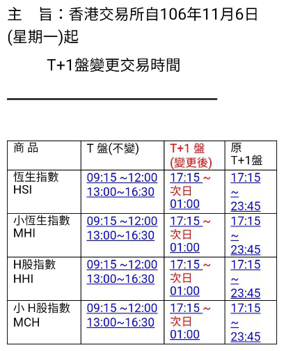 國外期貨商品部分保證金調整 106/10/31 收盤後生效  :