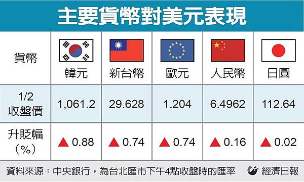 外資卡位亞洲國家通膨升息行情,熱錢湧入,2018年首個交易日新台幣狂漲,昨天升0.74%,創逾八個月半來最大單日升幅,成交量11.82億美元。