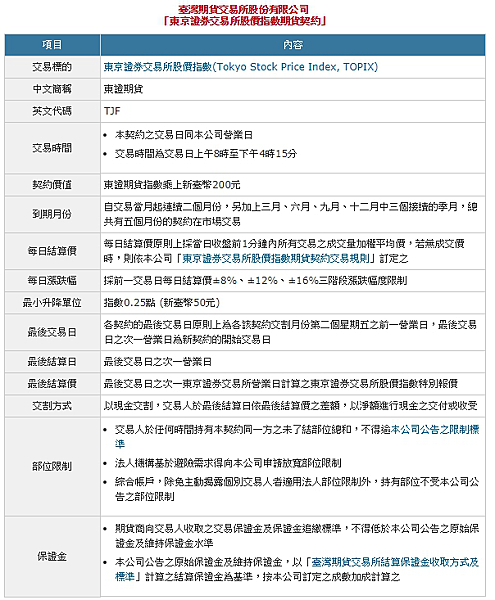 「東京證券交易所股價指數期貨契約」- 日本東證期貨