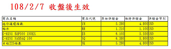 期貨商品保證金調整  10 8 / 2 / 7   收盤後生效
