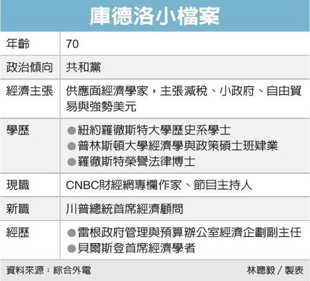 美國總統川普任命保守派的經濟學者、財經媒體CNBC名嘴庫德洛出任白宮首席經濟顧問,接替日前請辭的柯恩。庫德洛也毫不浪費時間,暗示將更強硬面對中國、推動新一輪減稅,並支持強勢美元,顯示他已準備好擔任川普的「經濟衛士」。