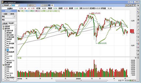 指標運用 1、當指數從SAR曲線下方開始向上突破SAR曲線時,為買入信號,預示著指數一輪上升行情可能展開。 2、當指數向上突破SAR曲線後繼續向上運動而SAR曲線也同時向上運動時,表明指數的上漲趨勢已經形成,SAR曲線對指數構成強勁的支撐。 3、當指數從SAR曲線上方開始向下突破SAR曲線時,為賣出信號,預示著指數一輪下跌行情可能展開。 4、當指數向下突破SAR曲線後繼續向下運動而SAR曲線也同時向下運動,表明指數的下跌趨勢已經形成,SAR曲線對指數構成巨大的壓力。 (元富軟體 新全球達人技術分析) ●使用SAR指標你一定要懂的 1.SAR 無疑是所有指標中買賣點最明確,最易能配合操作策略的指標。
