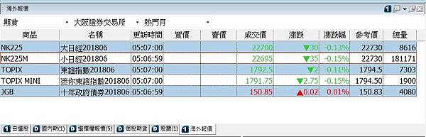 JPX GROUP日本交易所集團、日經【JNI】的契約規格 日經的保證金是630000日幣,大約是台幣171,738元 合約規格:指數 × 1000 最小跳動點:10 最小跳動值:10000日幣 台灣交易時間:季月 主要交易月份:7:45 ~ 14:15 / 15:30 ~ 4:30 (T+1) 可以當沖交易 (元富新全球達人軟體 智慧閃電) JPX GROUP日本交易所集團、小日經【JNM】的契約規格 小日經的保證金是63000日幣,大約是台幣17,174元 合約規格:指數 × 100 最小跳動點:5 最小跳動值:500日幣 台灣交易時間:季月 主要交易月份:7:45 ~ 14:15 / 15:30 ~ 4:30 (T+1) 可以當沖交易 (元富新全球達人軟體 技術分析) 東證期貨介紹 日本東證期貨(全名為東京證券交易所股價指數期貨;TOPIX)為台灣期貨市場首檔國外指數期貨商品。