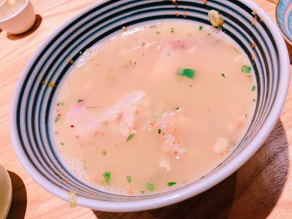 把前菜的生魚片一併放進來 就變成一道鮮甜的泡飯囉