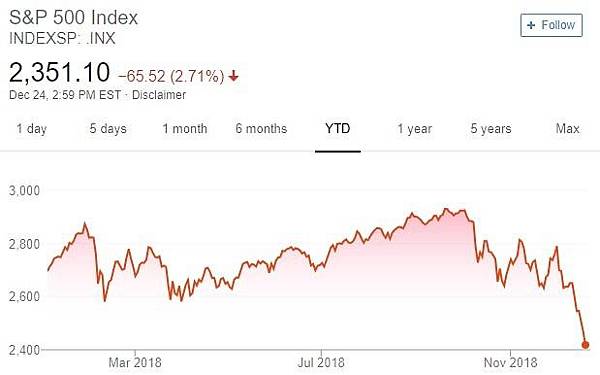史上最慘平安夜!道瓊暴跌653點 標普瀕熊市
