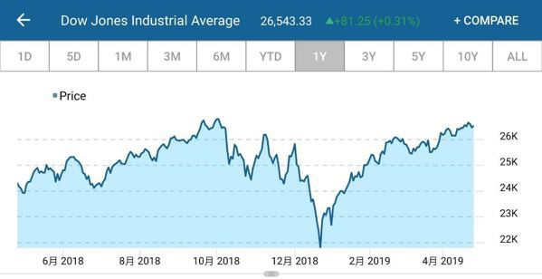 近一年道瓊工業指數走勢 取自CNBC