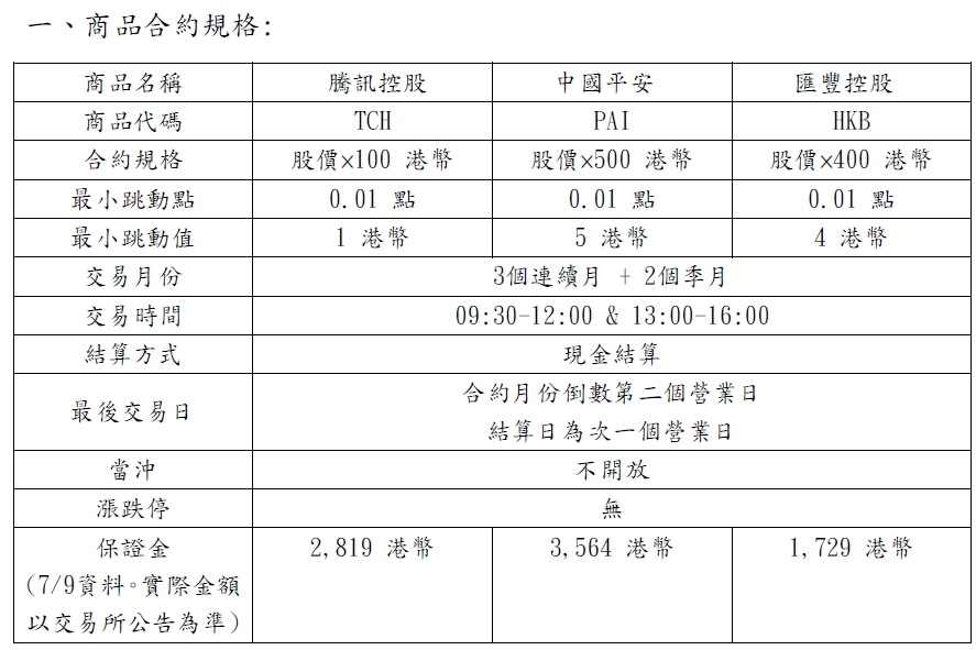 >>更多港交所期貨教學請點此【恆生指數期貨&H股指數期貨 合約規格教學保證金】