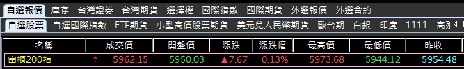 櫃買富櫃200指數行情報價