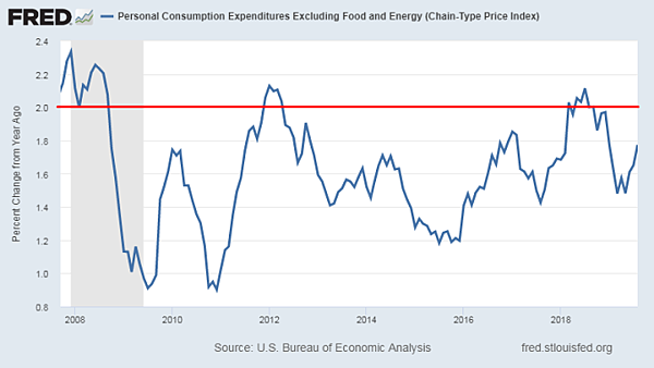 核心個人消費支出年增率 圖片:Fred