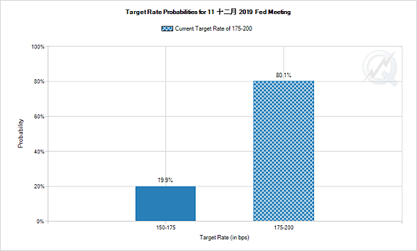 據 CME 利率觀測工具 FedWatch 數據顯示,當前華爾街預期 Fed 再次於 12 月出手降息之機率僅為 19.9%,下一次降息的可能時間是落在 2020 年。