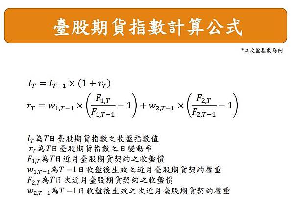證交所解釋,「台股期貨指數」是參考台股期貨契約(簡稱台指期)各期契約商品未平倉結構,運用期貨到期轉倉的方法編製,以近月台指期最後交易日的前5天,每天以等權重方式分批轉倉至次近月台指期契約,維持多頭部位的延續性,以期將長期持有多頭部位的投資績效給予指標化。