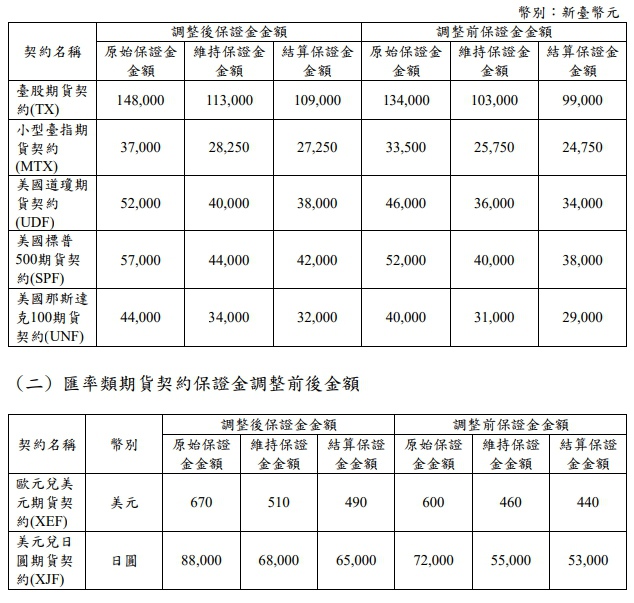 (一)股價指數類期貨契約保證金調整前後金額