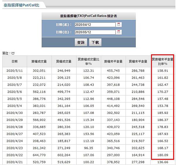 ㆍPUT未平倉量與CALL未平倉量的比率。