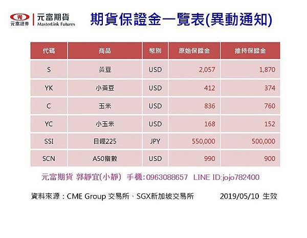 合約規格:摩根期指*100美元最小跳動點:0.1點=10美元 (大約台幣300元) 交易月份:3、6、9、12及2個連續月 本地交易時間: 08:45~13:50 14:15~隔天04:45(T+1) 期貨保證金:2310美元 (大約台幣71250元)