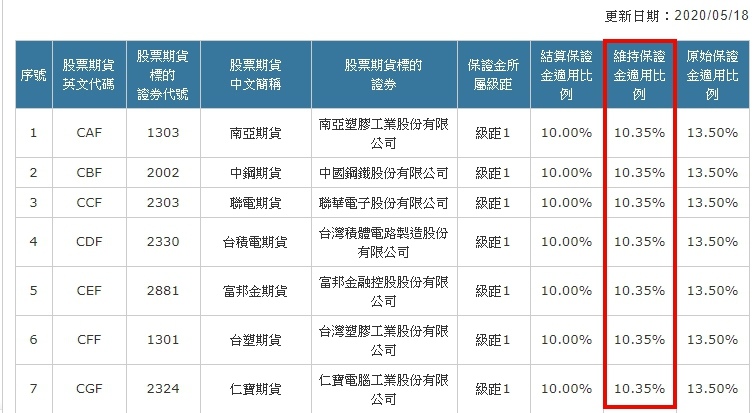 期交所最近蠻多股票期貨有調整他的適用比例喔!