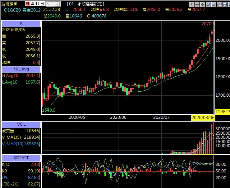 黃金期貨技術分析走勢 搭配 H/L AVG 高低平均價指標 +快速KD