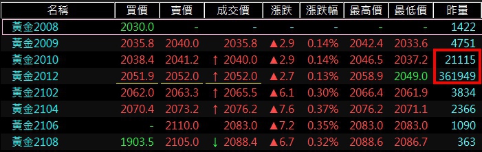 依照黃金期貨成交量熱門程度排行