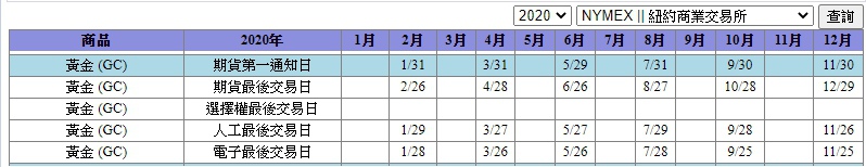 黃金期貨電子最後交易日、微型黃金電子最後交易日