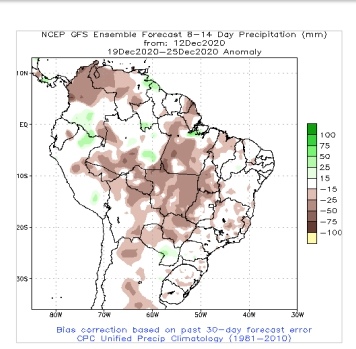 上周南美洲天氣預報的微弱改善現在已經逆轉,兩種天氣模型現在均表明,巴西的降雨量低於正常水平。主要的基本主題保持不變,即南美天氣的發展,中國對美國生產的需求,以及由於持續的量化寬鬆導致大宗商品價格上漲,預期美元疲軟。