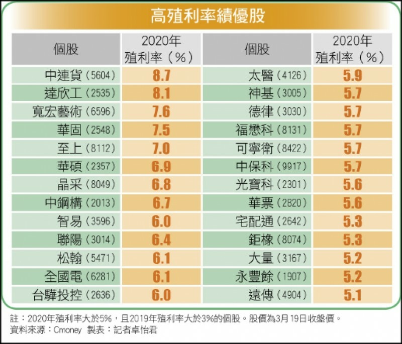 高殖利率股若具有基本面佳的條件,即使無法賺取大幅的股價價差,但長期仍有豐厚股利,成為保守穩健型投資的重點操作。