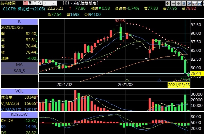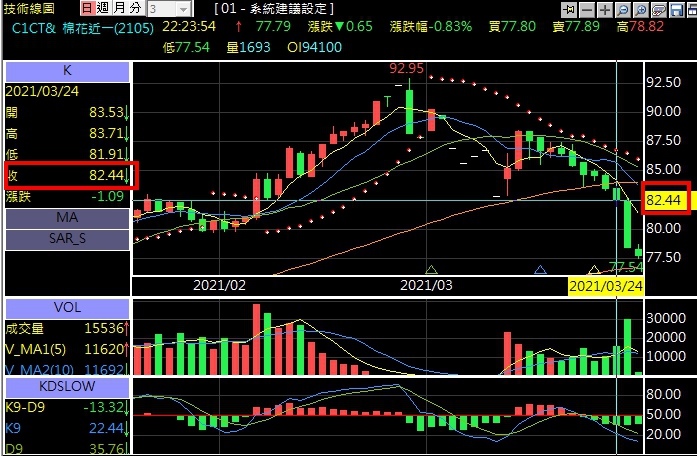 棉花期貨原始保證金: 2915美元 (台幣約91079元)