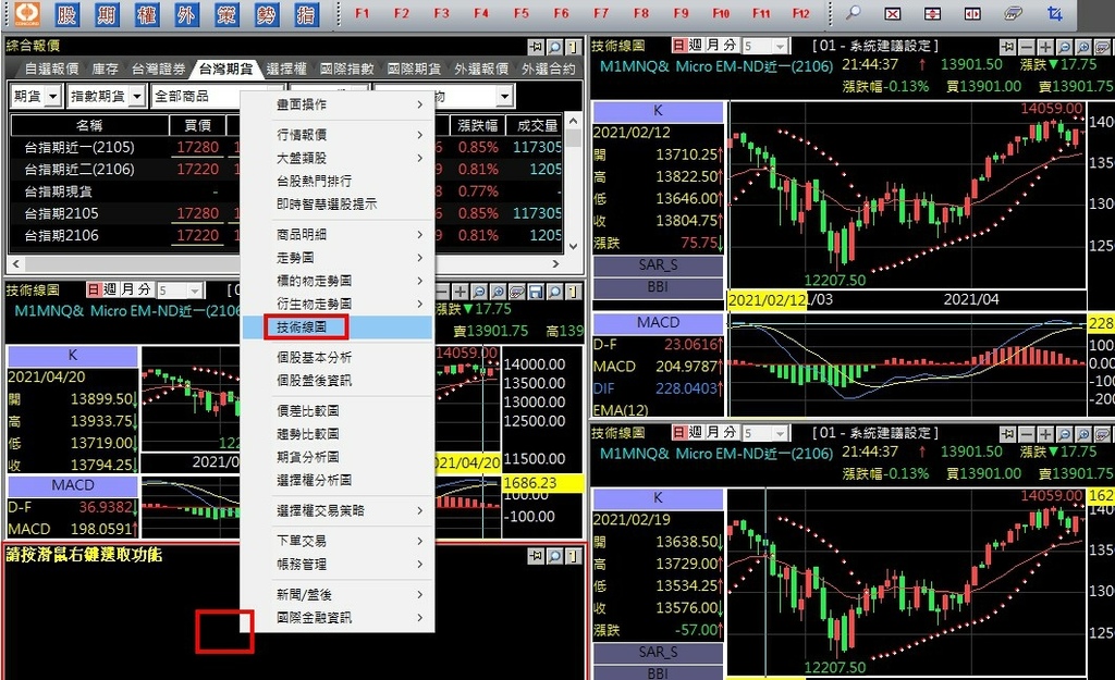 想要同時看很多技術分析K線圖的時候,可以再空白處按右鍵》技術線圖