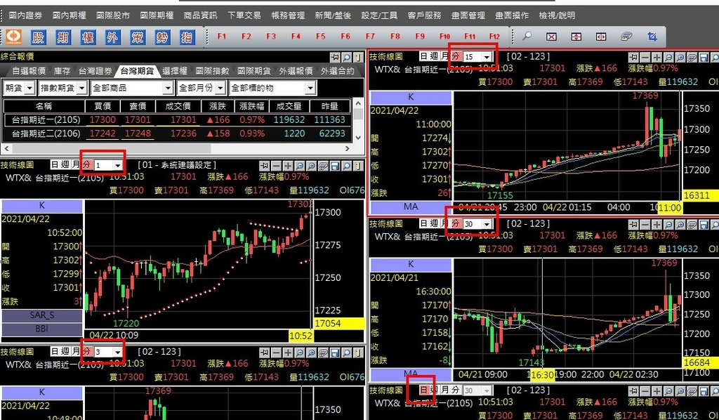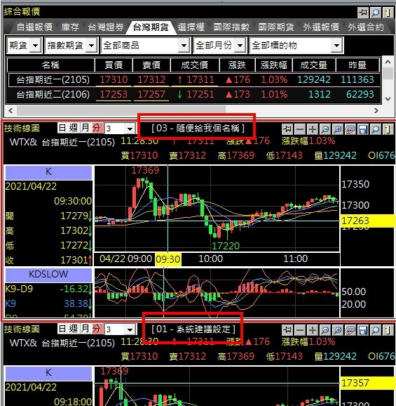 如果技術分析同時想看同個商品 不同分線 可以直接設定