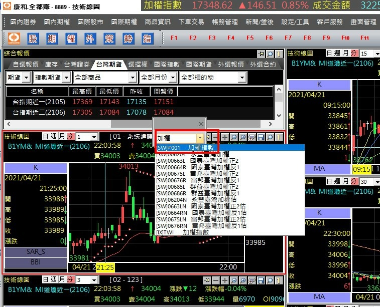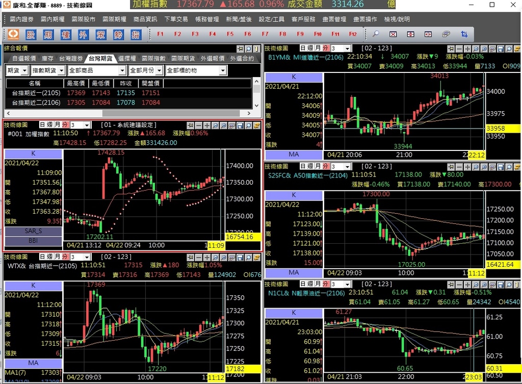 假如我想同時看加權指數、台指期、小道瓊、A50、輕原油不同商品