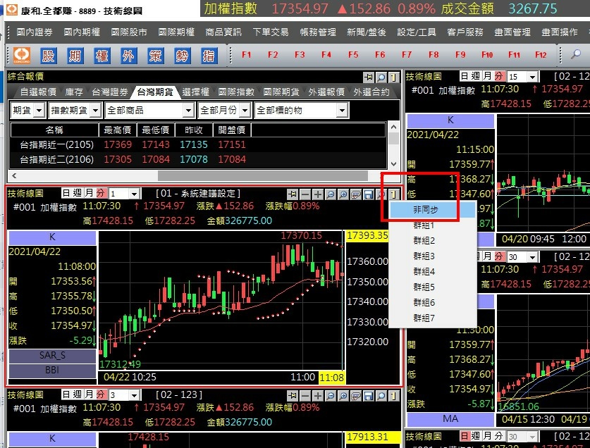 同時想看很多技術分析或報價,該怎麼去分割畫面呢?