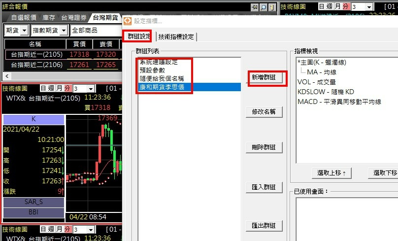 先選群組名稱》設定要的指標》左下框可以設定不同參數