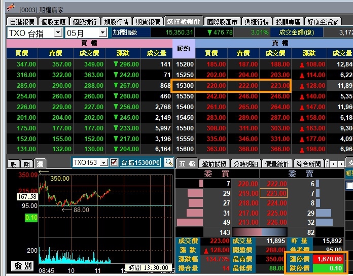 15300 Put前一日收盤結算價為95